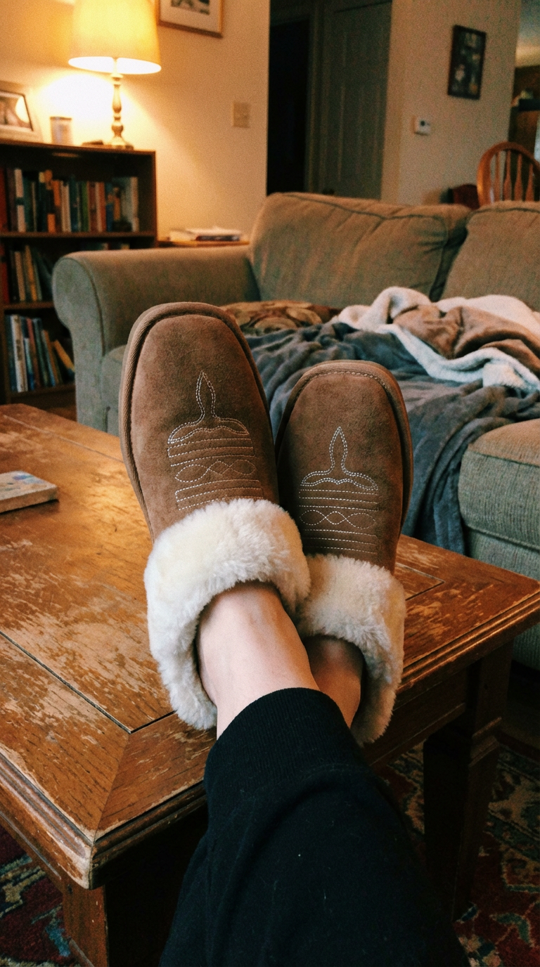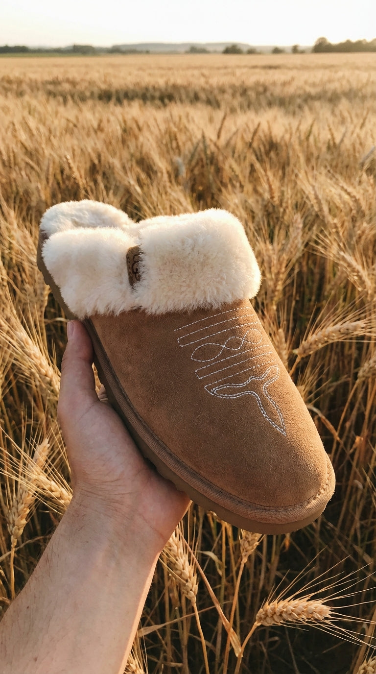 Amelia’s Cowboy Slippers started with a simple obsession: I wanted footwear that felt like true western craftsmanship something you could feel the moment you put it on. Not factory-made. Not generic. Something that makes people stop and say,